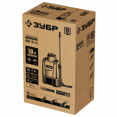 Опрыскиватель аккумуляторный ЗУБР ОПЛ-15-41, 15 л бак, 5 л/мин, 18 В, 4 А*ч, ОПЛ-15-41