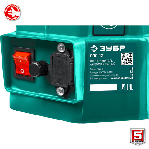 Опрыскиватель аккумуляторный ЗУБР ОПС-12, 12 л бак, 3,2 л/мин, 12 В, 8 А*ч, ОПС-12