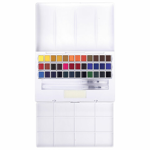 Акварель художественная кюветы НАБОР 36 цветов по 3,5 г, пластиковый кейс, BRAUBERG ART CLASSIC, 191771