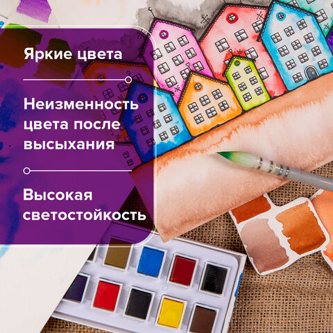 Художественная акварель профессионального качества в кюветах BRAUBERG ART DEBUT предназначена для живописи.