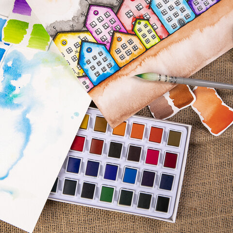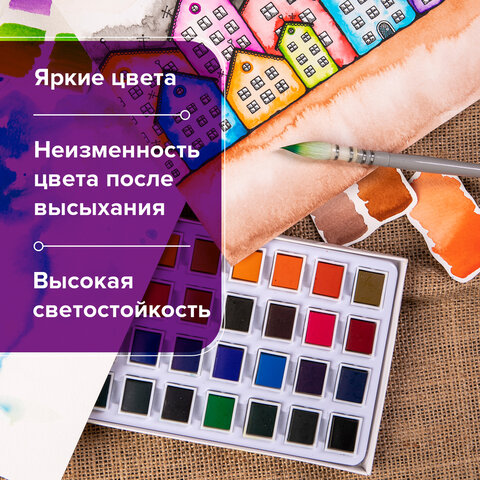 Художественная акварель профессионального качества в кюветах BRAUBERG ART DEBUT предназначена для живописи.
