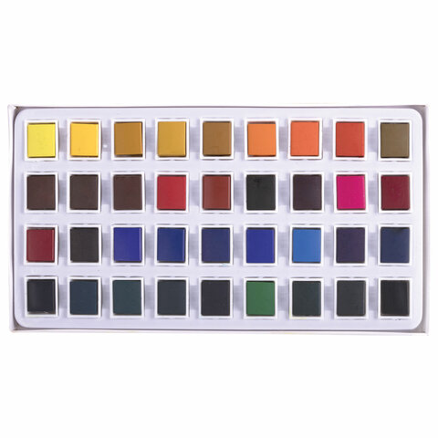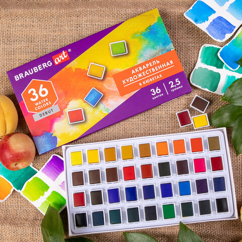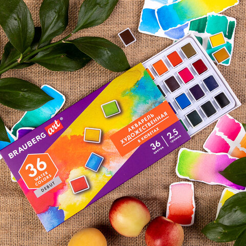 Акварель художественная в кюветах НАБОР 36 цветов по 2,5 г, BRAUBERG ART DEBUT, 191779