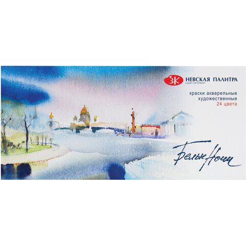 Краски акварельные художественные "Белые Ночи", 24 цвета, кювета 2,5 мл, пластиковая коробка, Невская Палитра, 1942090