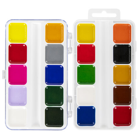 Краски акварельные BRAUBERG KIDS, медовые, 20 цветов, квадратные кюветы, пластиковый пенал, 192283