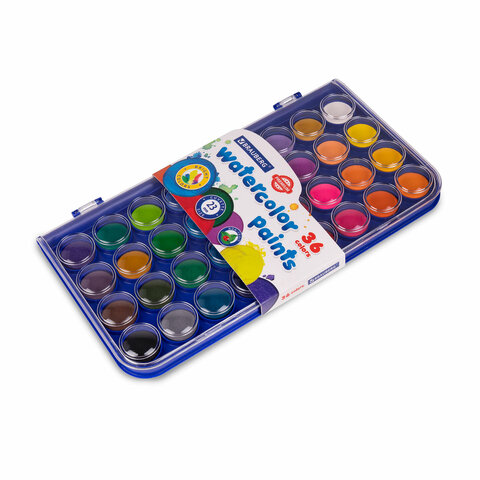 Краски акварельные BRAUBERG "PREMIUM" 36 цветов, круглые кюветы 23 мм, пенал, 191746