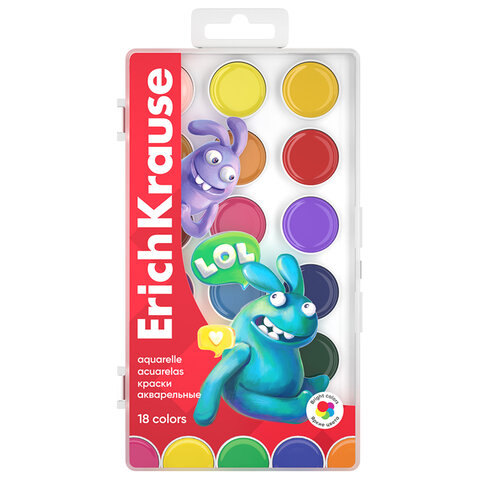 Краски акварельные ERICH KRAUSE "Jolly Friends", 18 цветов, пластиковый пенал, европодвес, 61367