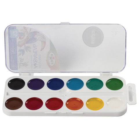 Краски акварельные ГАММА "Классическая", 12 цветов, медовая, пластиковый корпус, европодвес, 1009194