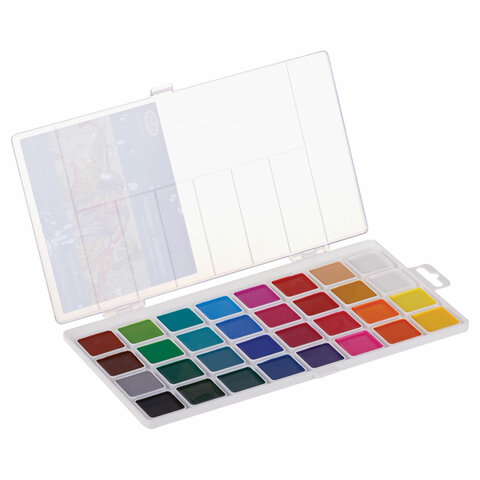 Краски акварельные ГАММА "Классическая", 32 цвета, медовая, пластиковая коробка, европодвес, 1009199