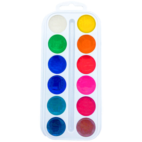 Краски акварельные ПИФАГОР 12 цветов, медовые, круглые кюветы, 192549