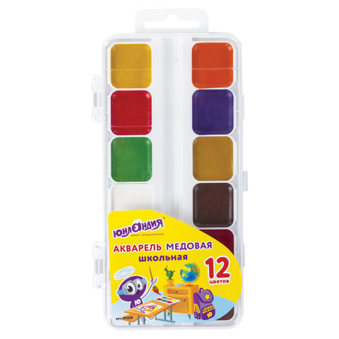 Краски акварельные ЮНЛАНДИЯ "ШКОЛЬНЫЕ", медовые, 12 цветов, КЛАССИЧЕСКИЕ, пластик, 191529