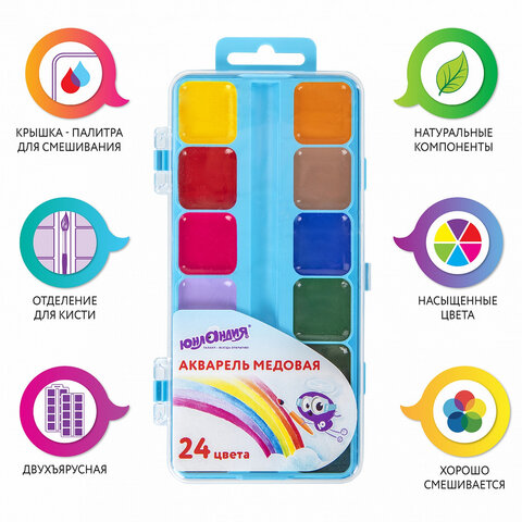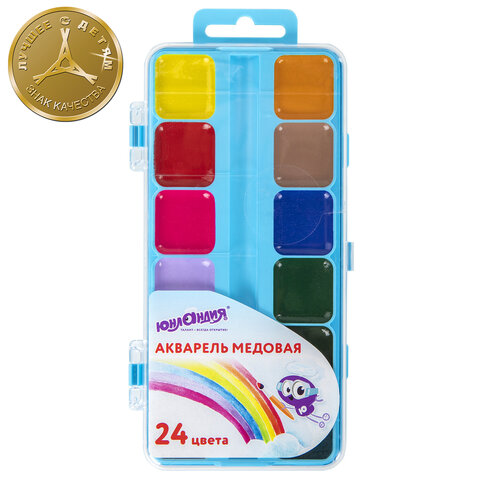 Краски акварельные ЮНЛАНДИЯ "ЮНЛАНДИК-ХУДОЖНИК", медовые, 24 цвета, КЛАССИЧЕСКИЕ, пластик, 192288