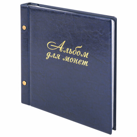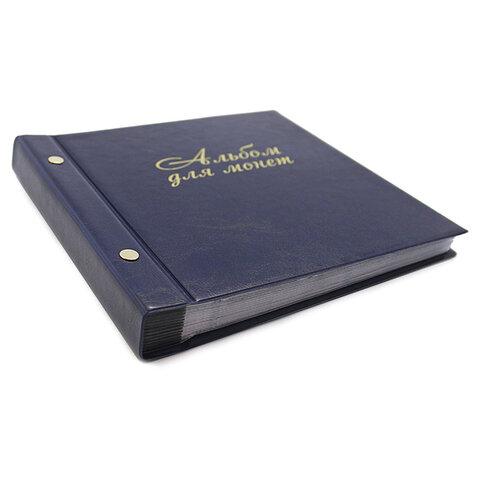 Альбом для монет и купюр на винтах универсальный, 224х224 мм, на 216 монет до D-45 мм, выдвижные карманы, синий, "ДПС", 2855-201