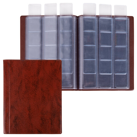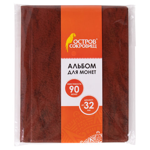 Альбом нумизмата для 90 монет (диаметр до 32 мм), 145х185 мм, коричневый, ОСТРОВ СОКРОВИЩ, 237959