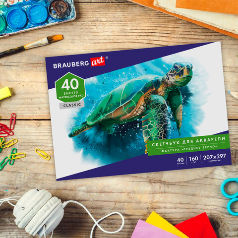 Альбом для акварели, бумага 160 г/м, 207х297мм, 40л, склейка, BRAUBERG ART CLASSIC, 105927