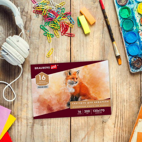 Альбом для акварели, бумага ИТАЛИЯ 200 г/м2 25% хлопок 120х170 мм, 16 л., BRAUBERG ART PREMIERE, 105910