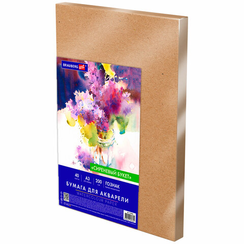 Бумага для акварели А3 40 л., 200 г/м2 ГОЗНАК СПб, в коробке, BRAUBERG ART CLASSIC, "СИРЕНЕВЫЙ БУКЕТ", 116886
