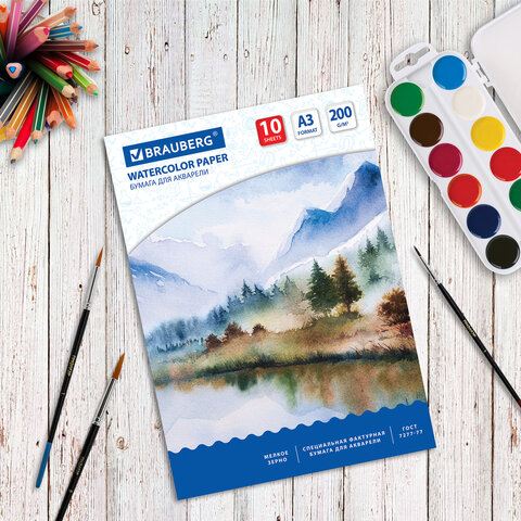 Бумага для акварели БОЛЬШАЯ А3, 10 л., 200 г/м2, 297х420 мм, BRAUBERG, "Весна", 111063