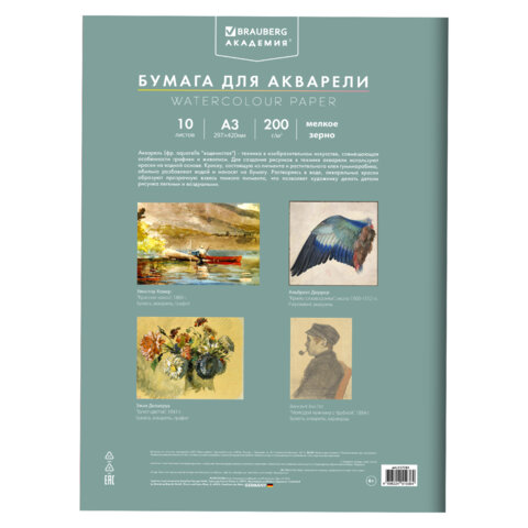 Папка для акварели BRAUBERG АКАДЕМИЯ предназначена для рисования всеми видами водорастворимых красок, а также подойдет для рисования карандашами, ручками и фломастерами. Бумага подходит для непрофессионального и детского рисования.