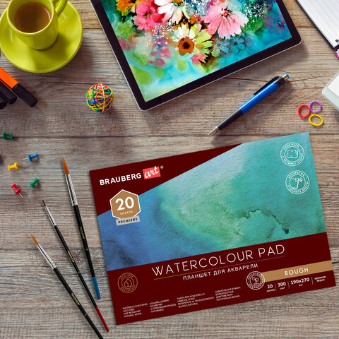 Планшет для акварели BRAUBERG ART PREMIERE предназначен для профессионалов и людей, увлекающихся живописью. В альбоме использована профессиональная импортная акварельная бумага.