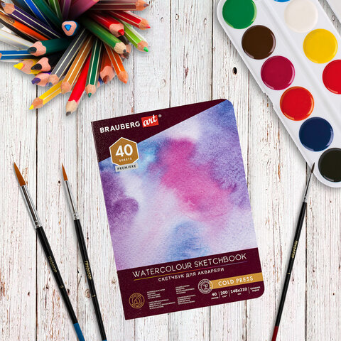 Скетчбук для акварели, 200 г/м2, 148х210 мм, среднее зерно, 40 л., книжный переплет, BRAUBERG ART PREMIERE, 113262