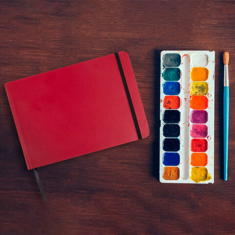 Скетчбук для акварели, 200 г/м2, 148х210 мм, среднее зерно, 40 л., КОЖЗАМ, резинка, BRAUBERG ART PREMIERE, 113265