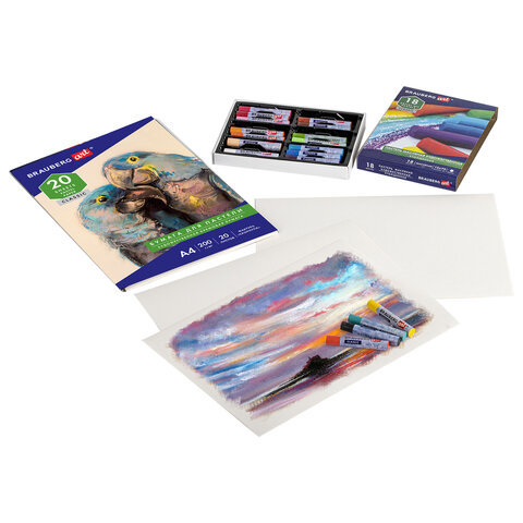 Папка для пастели BRAUBERG предназначена для различных техник рисования. Позволяет создавать мягкие и детализированные текстуры на картинах, а при более плотной зарисовке пастель выглядит ярко и сочно.