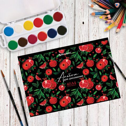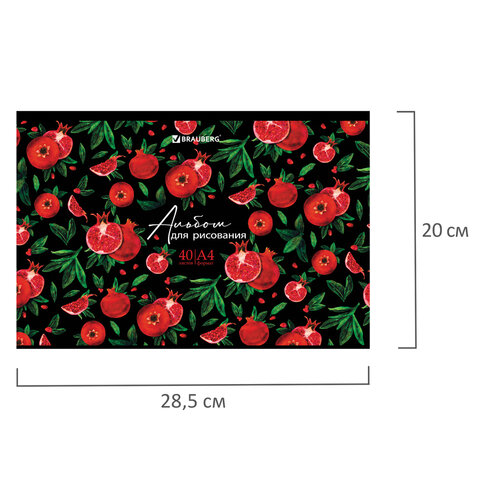 Альбом для рисования, А4, 40 листов, скоба, глянцевый лак, BRAUBERG, 200х285 мм, "Гранаты", 106705
