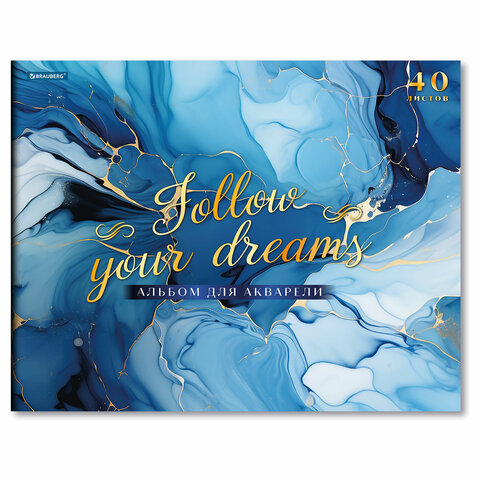 Альбом для акварели А3, 40 л., бумага 200 г/м2, склейка, обложка картон, фольга, BRAUBERG, "Мрамор", 107128