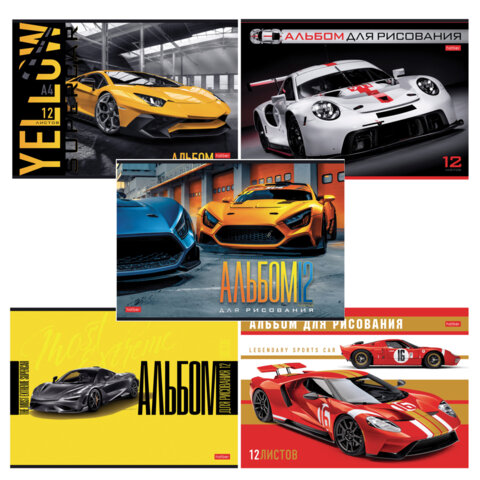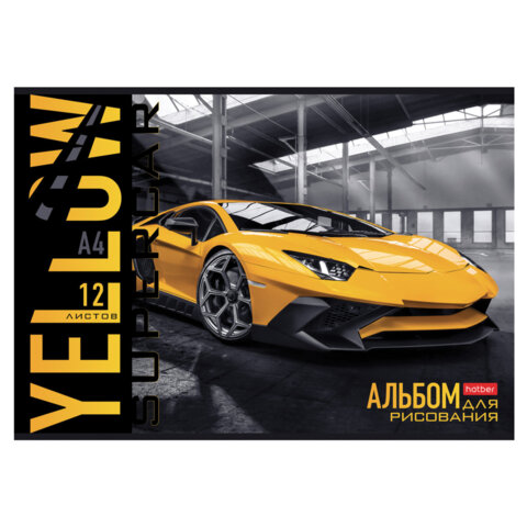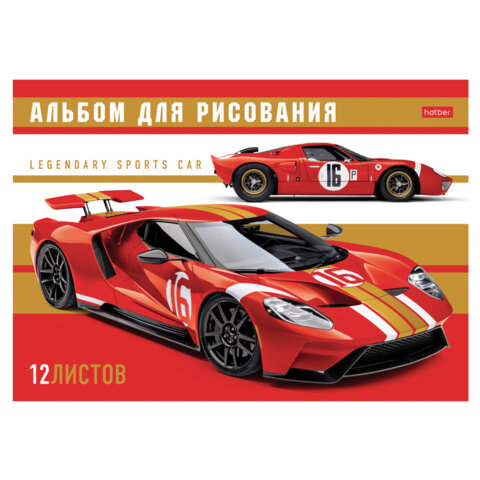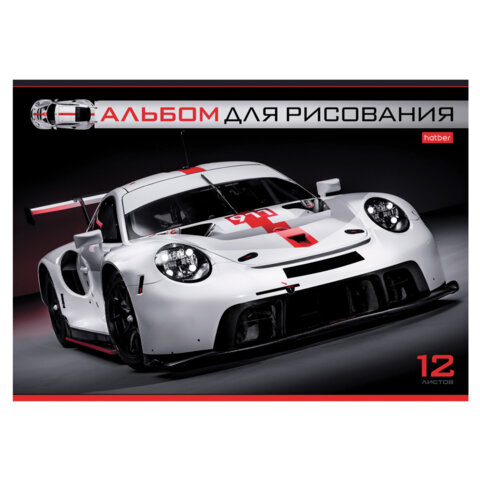 Альбом для рисования А4 12 л., скоба, обложка картон, HATBER, 205х290 мм, "Спортивные авто", 079709, 12А4В