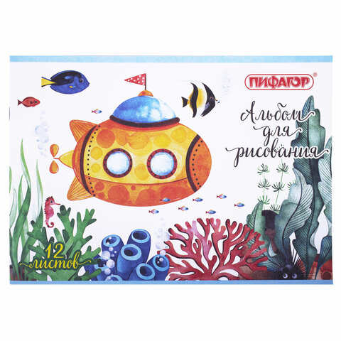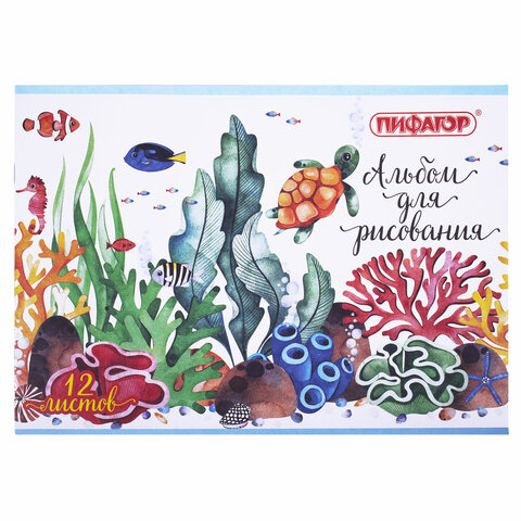 Альбом для рисования А4 12 л., скоба, обложка офсет, ПИФАГОР, 203х288 мм, "Океан" (2 вида), 106687