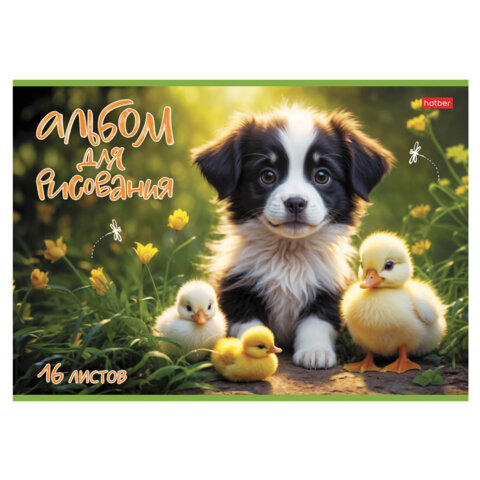 Альбом для рисования А4 16 л., скоба, обложка картон, HATBER, 205х290 мм, "Верные друзья" (5 видов), 091491, 16А4В