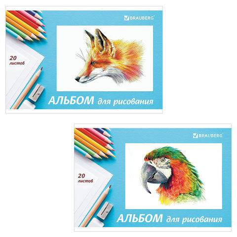 Альбом для рисования, А4, 20 л., скоба, обложка картон, BRAUBERG, 200х283 мм, "Я рисую мир" (2 вида), 104872