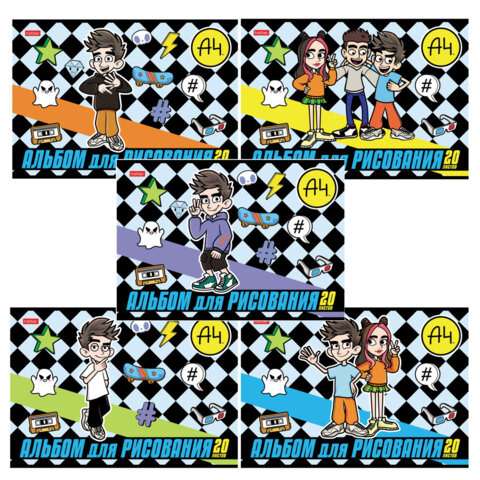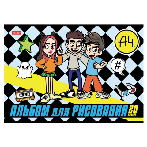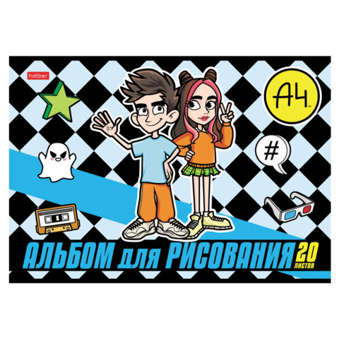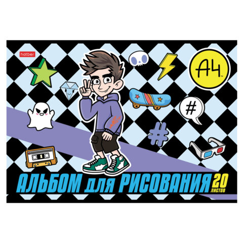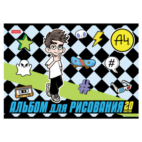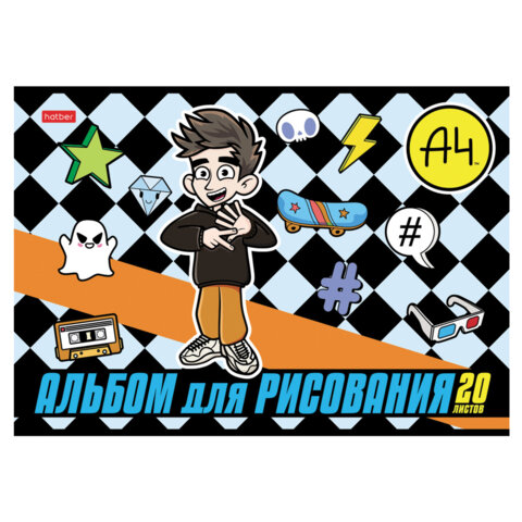 Альбом для рисования А4 20 л., скоба, обложка картон, HATBER, 205х290 мм, "Влад А4", 084854, 20А4В