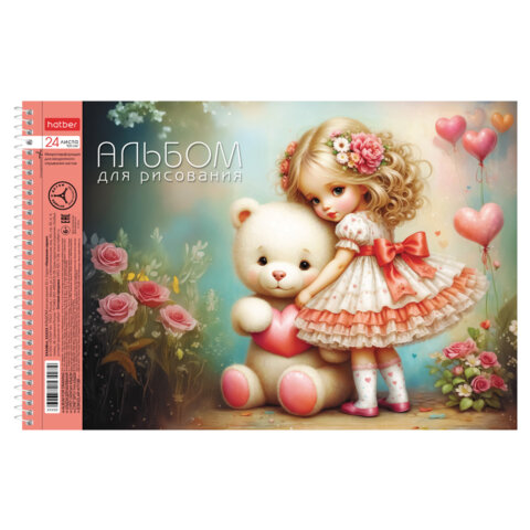 Альбом для рисования А4 24 л., спираль, обложка картон, HATBER, 198х300 мм, "Нежная любовь" (5 видов), 085258, 24А4Всп
