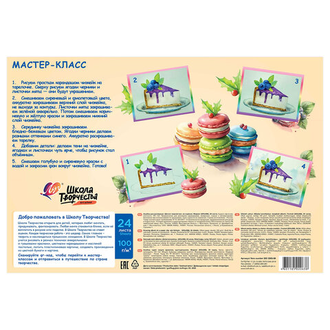 Альбом для рисования, А4, 24 листа, скоба, ЛУЧ "Школа творчества", 203х288 мм, "Макаронс", 35С 2283-08