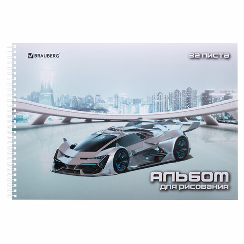 Альбом для рисования А4 32 л., гребень, выборочный лак, BRAUBERG, 195х285 мм, "Суперкар" (2 вида), 106699