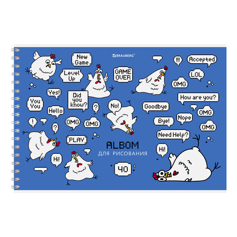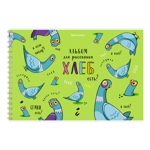 Альбом для рисования А4, 40 л., гребень, обложка картон, BRAUBERG, 195х285 мм, "Пернатые", 107120