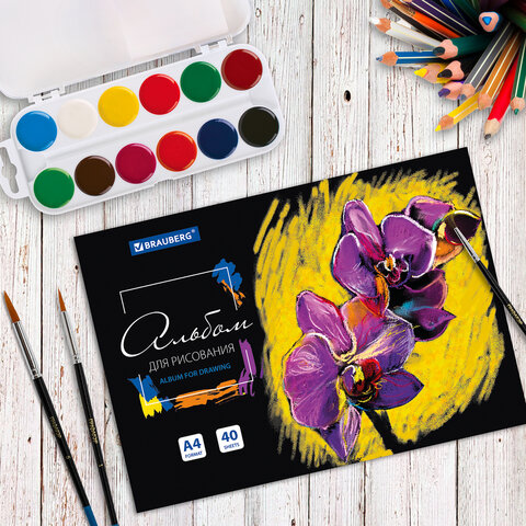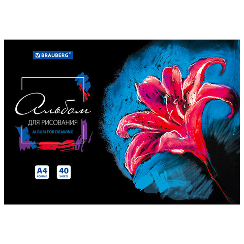 Альбом для рисования А4 40 л., склейка, обложка картон, подложка, BRAUBERG, 205х290 мм, "Blossom", 106330