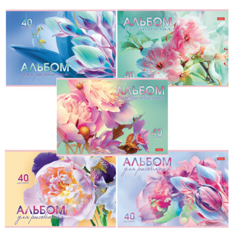 Альбом для рисования А4 40 л., скоба, обложка картон, HATBER, 205х290 мм, "Грация цветов", 085137, 40А4В