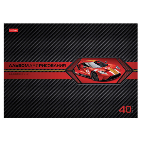 Альбом для рисования А4 40 л., скоба, выборочный лак, HATBER, 205х290 мм, "AutoCarbon", 085129, 40А4вмВ