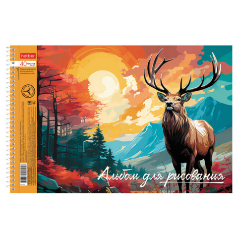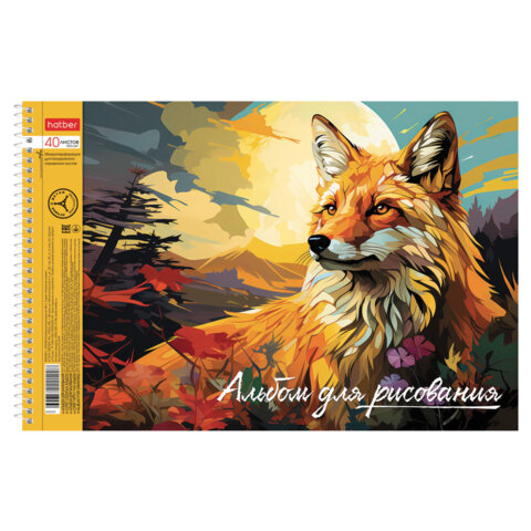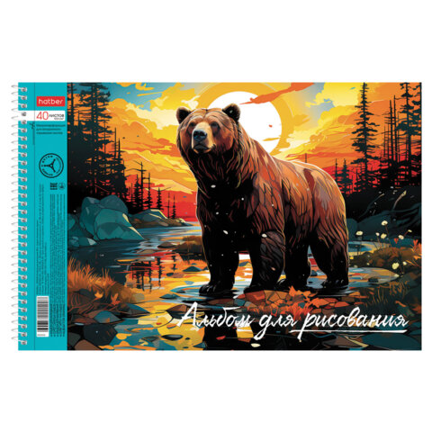 Альбом для рисования А4 40 л., спираль, обложка картон + тиснение, HATBER, 198х300 мм, "Дикий мир России" (4 вида), 085173, 40А4тВсп