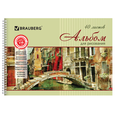 Альбом для рисования, А4, 40 листов, гребень, обложка картон, BRAUBERG, 195х285 мм, "Город мечты" (2 вида), 103731