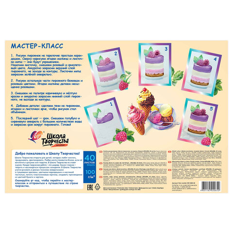 Альбом для рисования, А4, 40 листов, скоба, ЛУЧ "Школа творчества", 203х288 мм, "Мороженое", 35С 2285-08