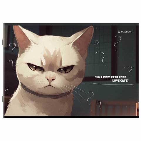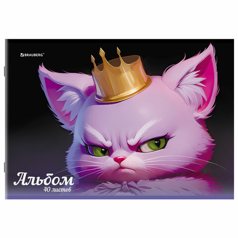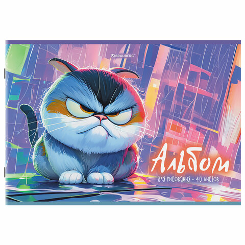 Альбом для рисования А4, 40 листов, скоба, обложка картон, BRAUBERG, 203х288 мм, "Суровые коты" (4 вида), 107115