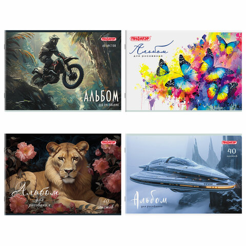 Альбом для рисования А4, 40 листов, скоба, обложка офсет, ПИФАГОР, 203х288 мм, "МИКС-1", 107113
