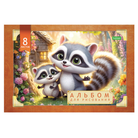 Альбом для рисования А4 8 л., скоба, обложка офсет, HATBER ECO, 205х290 мм, Ассорти (5 видов), 081950, 8А4C