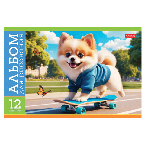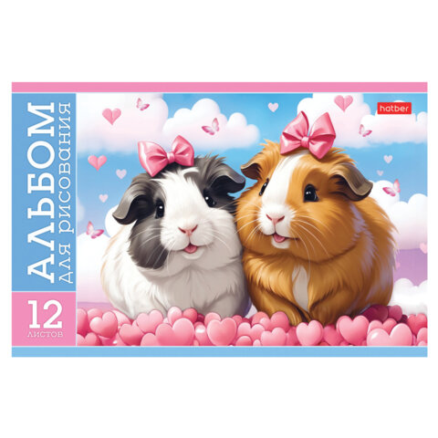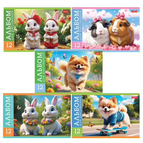 Альбом для рисования МАЛЫЙ ФОРМАТ А5 12 л., скоба, обложка картон, HATBER, 205х140 мм, "Пушистые милашки" (5 видов), 091518, 12А5В