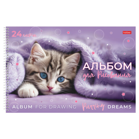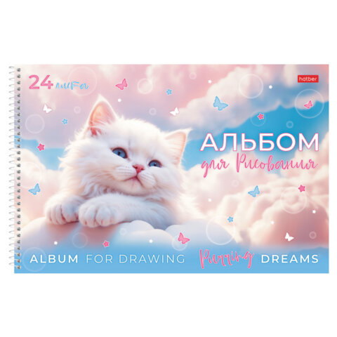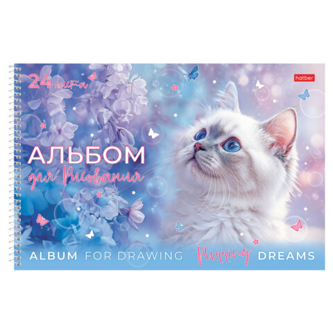 Альбом для рисования, обложка пластик, А4 24 л., спираль, HATBER, 198х300 мм, "Нежные мечты" (5 видов), 091533, 24А4Вгр