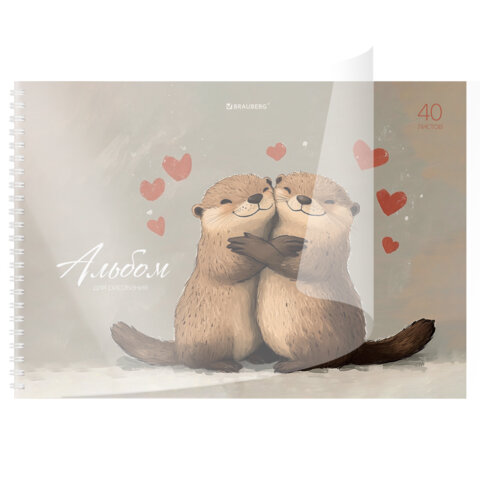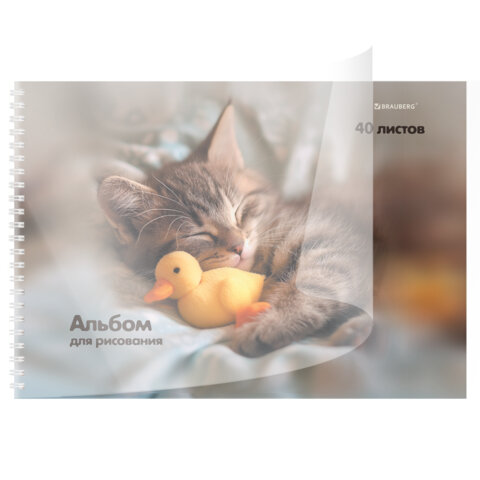 Альбом для рисования, пластиковая обложка, А4, 40 л., гребень, BRAUBERG, 210х297 мм, АССОРТИ-1 (8 видов), 107682