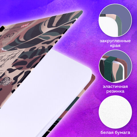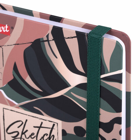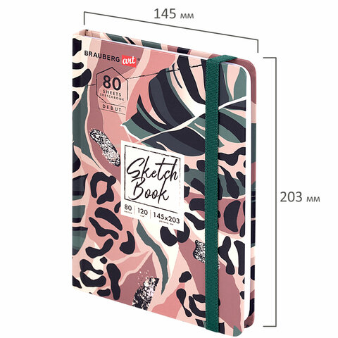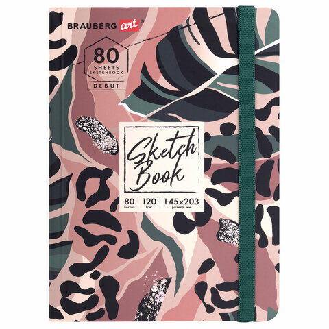 Скетчбук, белая бумага 120 г/м2, 145х203 мм, 80 л., резинка, твердый, BRAUBERG ART DEBUT "Листья", 114587